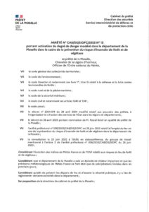 Arrêté préfectoral portant activiation du degré de danger modéré dans le département de la Moselle dans le cadre de la prévention du risque d’incendie de forêt et de végétaux